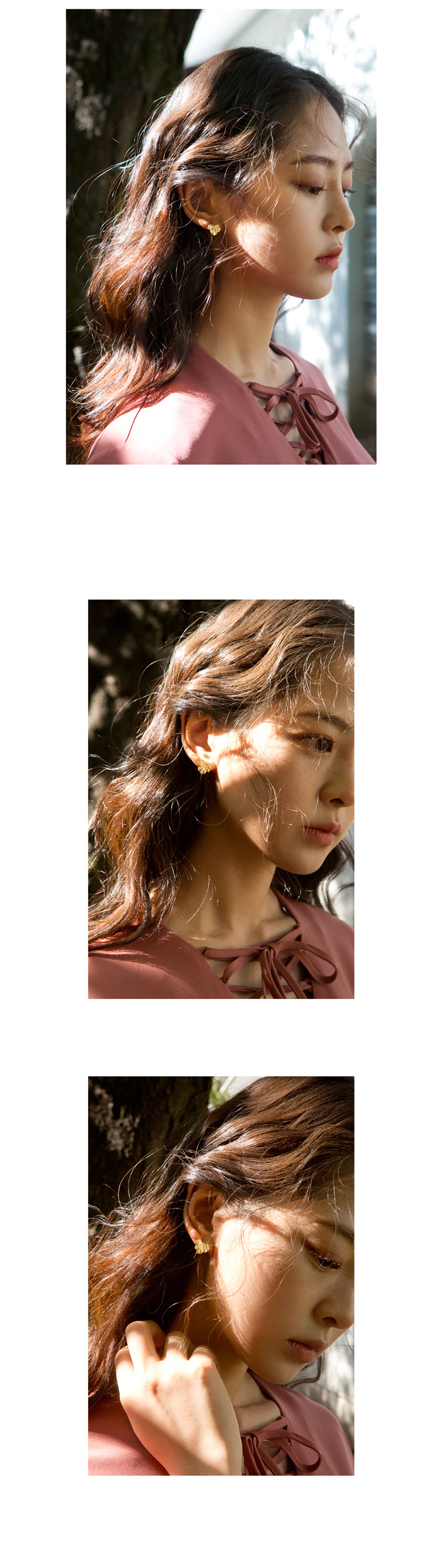 무광 골드빛의 잎사귀 디테일이 고급스러운 귀걸이입니다.