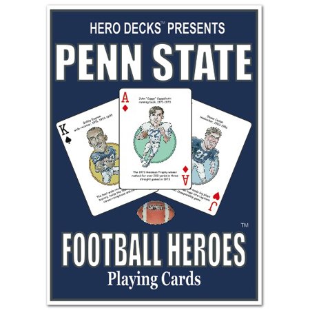 Each deck of playing cards features fifty-two of the greatest players by position and era in Penn State Football history. The face of each playing card is colorfully illustrated with a different hero ... this deck is sure to be a TOUCHDOWN with Nittany Lions fans of all ages!