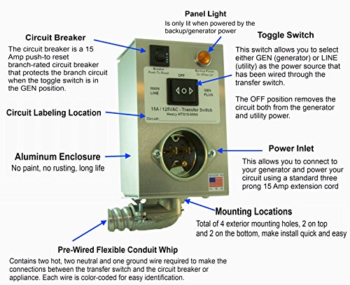 Arnberg Industries HTS15-MAN Generator Transfer Switch Powers Gas Furnace, Boiler or Pumps up to 1875 Watts 15 Amp One Circuit