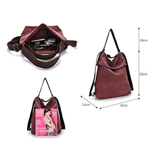 -. Feature : Das stilvolle und klassische Optik, alles zusammenpassend und nie aus der Mode. Es ist perfekt für den täglichen Gebrauch, Arbeit, Schule / Machen Sie aus hochwertigem canvas, langlebig und robust. / Multifunktionstasche , könnte als Schultertasche und Rucksack verwendet werden. / Verstellbarer Schultergurt für beide Quer Körper und einzelne Schulter. / Größe: 33cm x 42cm x 13 cm (B x H x T cm) Griff: 24cm