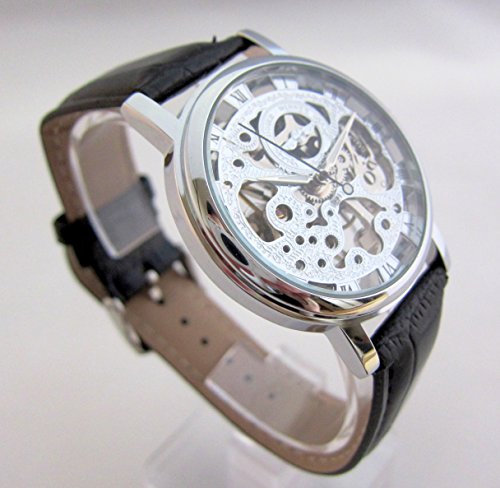 -. Title : WINNER 男の気品が漂う! ★ フル スケルトン 機械式 手巻き 腕時計 ★ シルバーフェイス 黒革ベルト wn.7