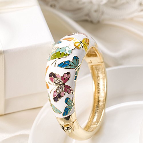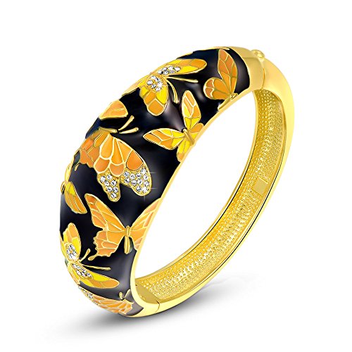 -. Title : Qianse "SP.R.Ing of Versailles" Handcrafted Cloisonne Butterfly Bangle Bracelet with Austrian Crystals