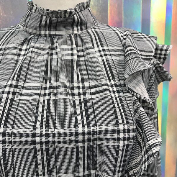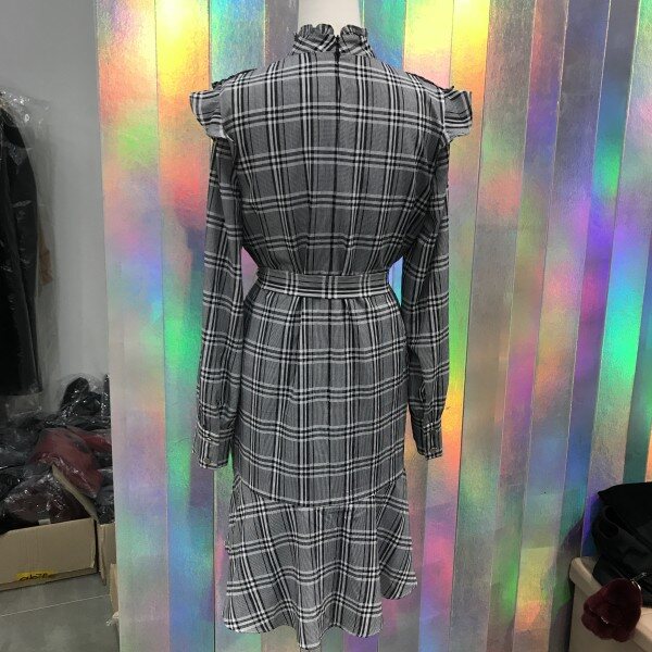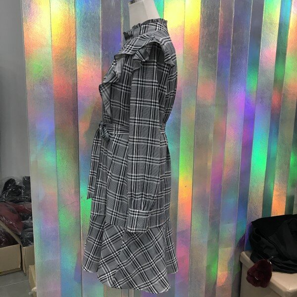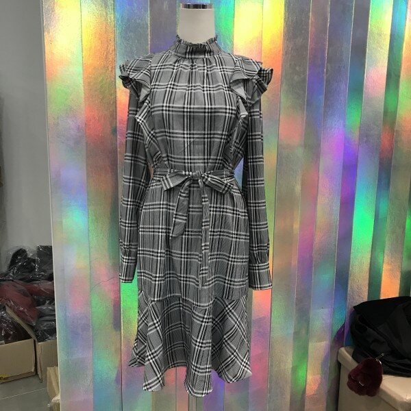 반하이넥 포인트체크패턴 프릴원피스입니다