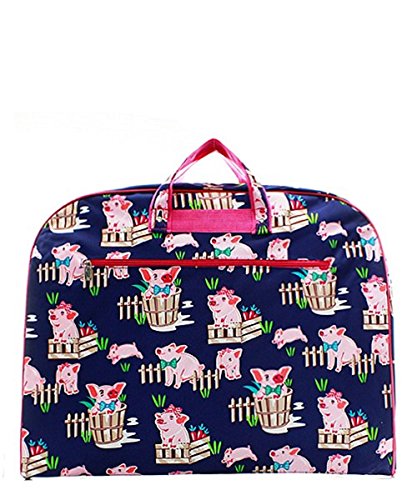 Pig on the Farm Hanging Garment Bag Navy Blue / Pink