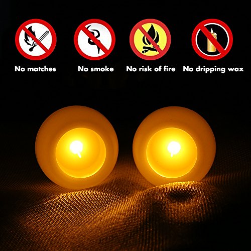 - √ COOL AND ROMANTIC — The flameless LED Tea Lights are ideal for decorations, It can be used as mood lights night lights with votive holders or other holders like glass cups.