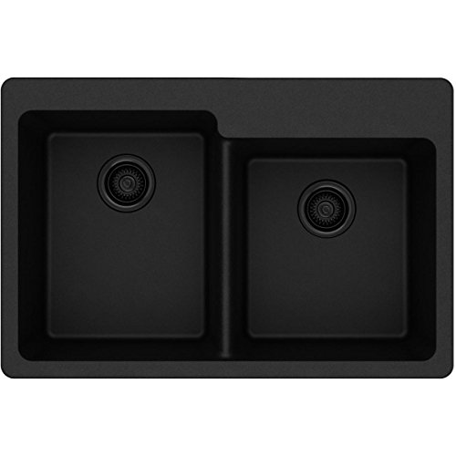 Elkay Quartz Classic ELG250RBK0 Black Offset Double Bowl Top Mount Sink