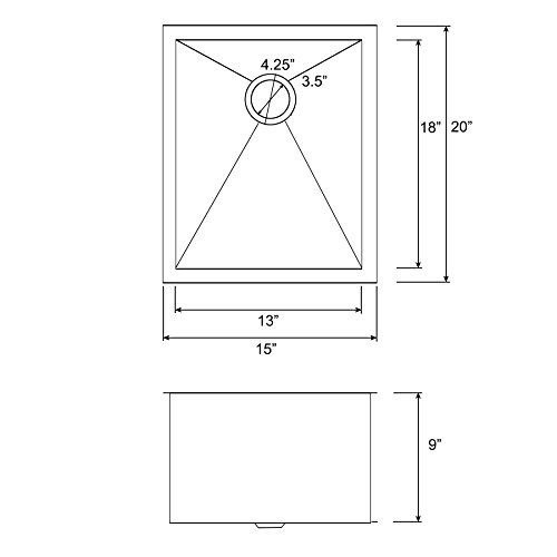 Golden Vantage 15" x 20" x 9" Handmade 18 Gauge Stainless Steel Under Mount Single Bowl Basin Kitchen Sink