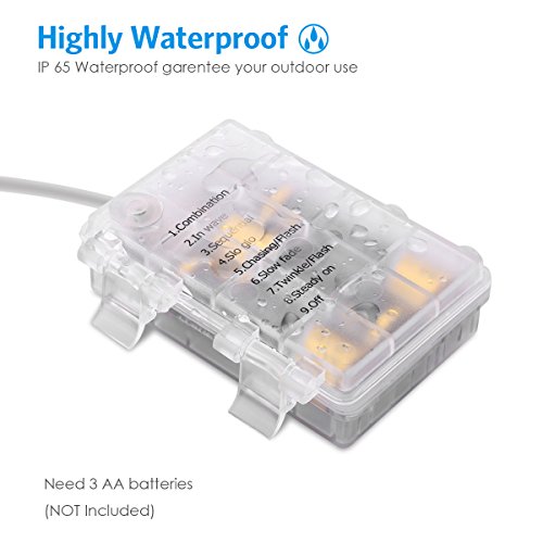 - IP65 Waterproof - IP65 Waterproof Copper Wire and Battery Case, no worry to use in the rainy day. Perfect use of outdoor, patio,garden,Christmas tree,wedding etc.