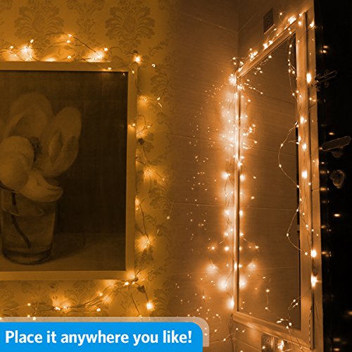 - High Quality Copper Wire - Each string lights are made of 2 high flexible copper wires, so it never mess and can be easily bended any shape you want. 50 led bulbs/16.4ft,with timer function and brightness control,it is not overheat after many hours of use, it will light up your life.