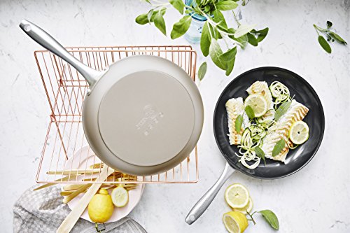 In honor of GreenPan milestone 10th birthday, we proudly present to you a limited edition collection of our very best-selling range. The Lima collection has been a staple in our assortment, now available in Bronze, adding a sophisticated touch to your kitchen. This limited edition 5 piece set is complete with a 10" ceramic non-stick open frypan, 12" ceramic non-stick covered frypan, bamboo tuner and GreenPan cookbook. Each frypan is coated with GreenPan patented Thermolon ceramic non-stick for healthy and convenient cooking with a metal utensil safe surface that gives you professional results. The collection is complete with modern stainless steel handles for an elegant accent and the 12" covered frypan has a glass lid to monitor your food as you cook. Join the celebration with GreenPan!Feature