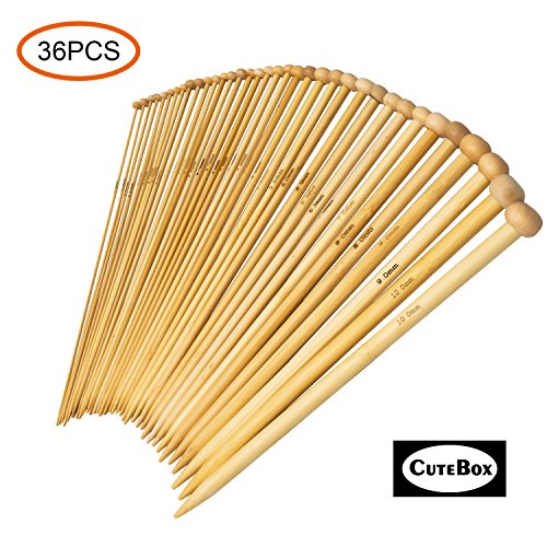 36PCS Bamboo Knitting Needles, Single Pointed Carbonized Knitting Needles, 18 Sizes, 2.0mm-10.0mm, Use for Handmade Creative DIY