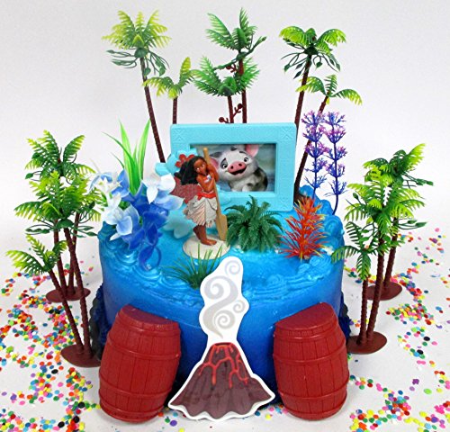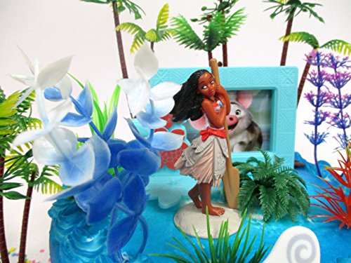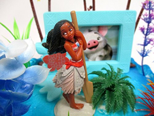 Moana Deluxe Island Themed Birthday Cake Topper Set Featuring Moana and Decorative Themed Accessories