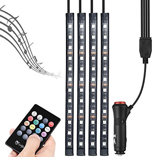 isYoung Car LED Strip Lights - 4 PCS 48 LED Multicolor Music Light Strips Car interior Decoration Atmosphere Lights, Wireless Remote Control
