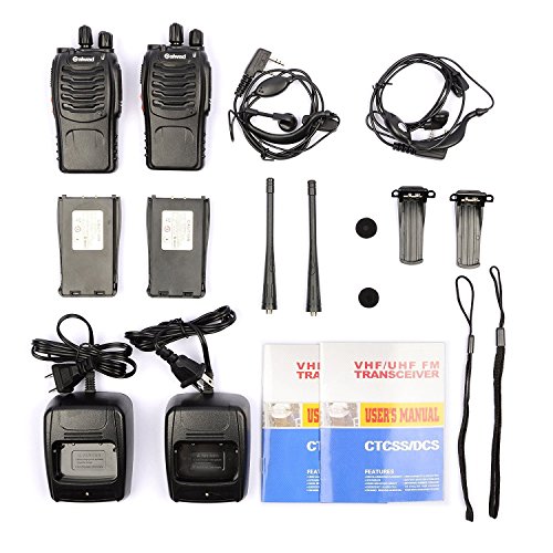 Galwad 2PCS Rechargeable Long Range 888S Walkie Talkies with Earpieces Headphones Earphones With US Wall Charger 2 Way UHF 400-470MHz CTCSS/DCS Voice Prompt for Field Survival Biking and Hiking