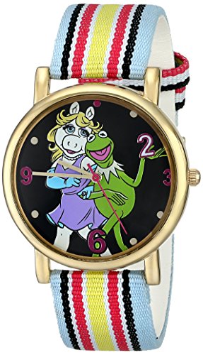 Muppets Women's MU1011 Kermit and Miss Piggy Dial Multi-colored Stripe Grosgrain Strap Watch