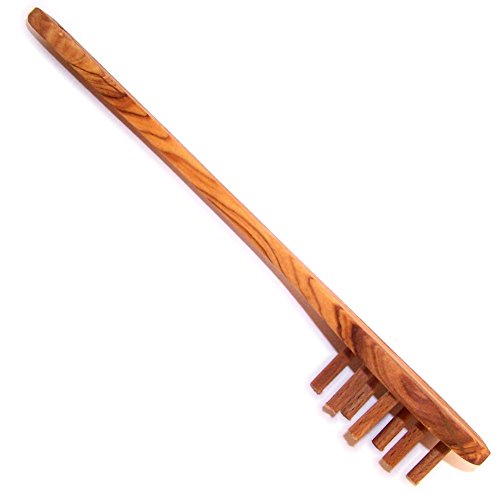 Hand Carved Olive Wood Spaghetti Spoon (12 Inches) - with 9 Pegs - Asfour Outlet Trademark