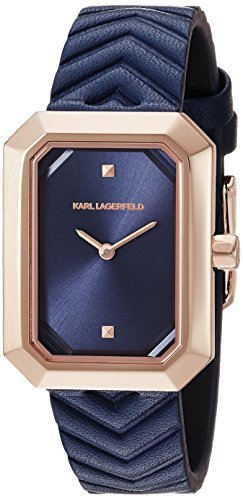 Karl Lagerfeld Women's Linda Quartz Stainless Steel and Leather Casual Watch, Color Rose Gold-Tone, Blue (Model: KL6104)