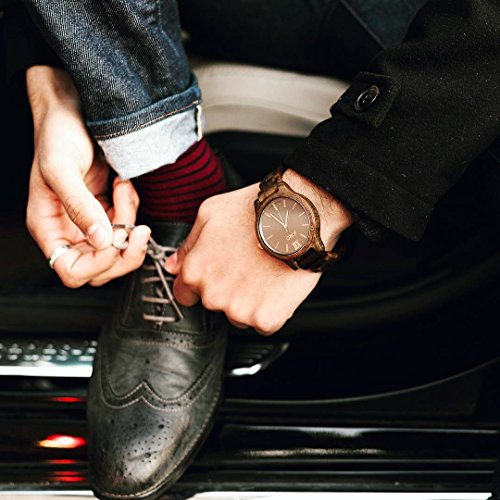 HAND-MADE CONSTRUCTION -- features 100% natural sandalwood, sustainably sourced from East Africa. Genuine sapphire crystal glass. Battery-powered (silver oxide 364 included) quartz crystal analog movement powers rose gold hands for ultra-accurate time keeping. Dual locking deployment buckle and reinforced clasp secure adjustable wood bracelet (removable metal pins secure links together).