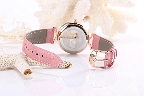 Fashion Women's Elegant Rose Gold-Tone Analog Quartz Genuine Leather Strap Dress Watch Waterproof