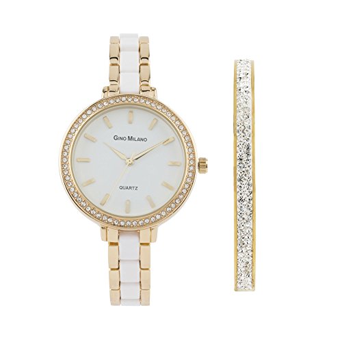 - Gift Box includes White Metal Band watch and bangle bracelet.