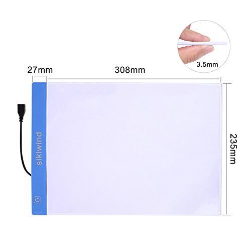 Led Light Box Dimmable Brightness SIKIWIND A4 Ultra-Thin Portable Tracing Light Box with USB Power Cable for Sketching - Artists Drawing - Animation and X-Ray Viewing etc(Blue)