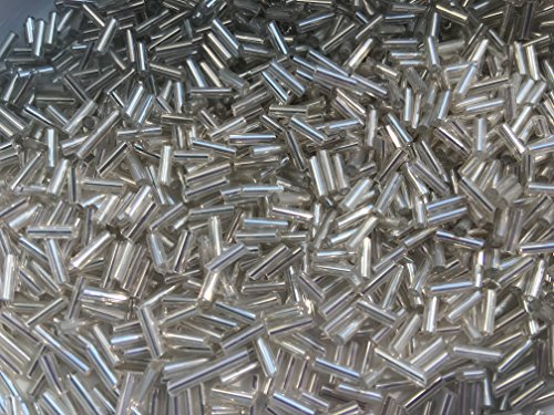 Czech Bugle Beads 40 gr / 1.4 oz Crystal Silver Glass Tube Size #3 7mm