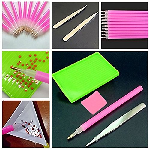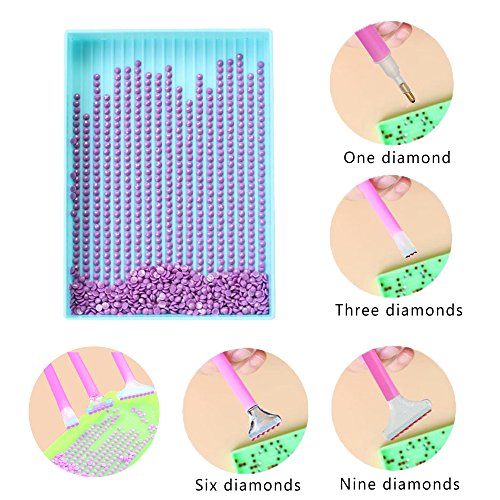 - Package:4 different types of diamond sticky pen,6 pieces plastic plates, 20 pieces of glues and 2 piece plastic tweezers,20 pieces bag.