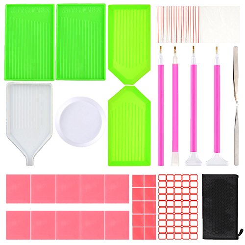 35 Pieces Diamond Painting Tools Quick Point Pen Kits, YARKOR DIY Diamond Painting Pen/Tweezers/Glue/Plastic Tray Set Sewing Accessories