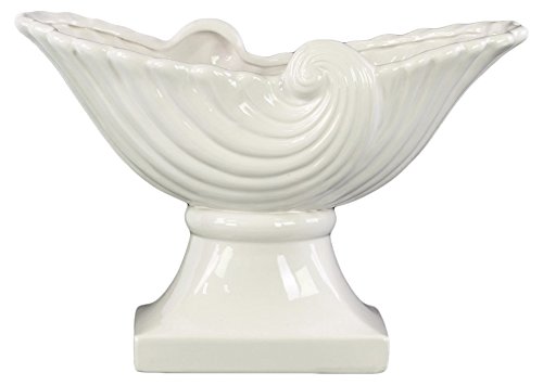 Benzara Partial Seashell Bowl with Wave Design on Pedestal-White