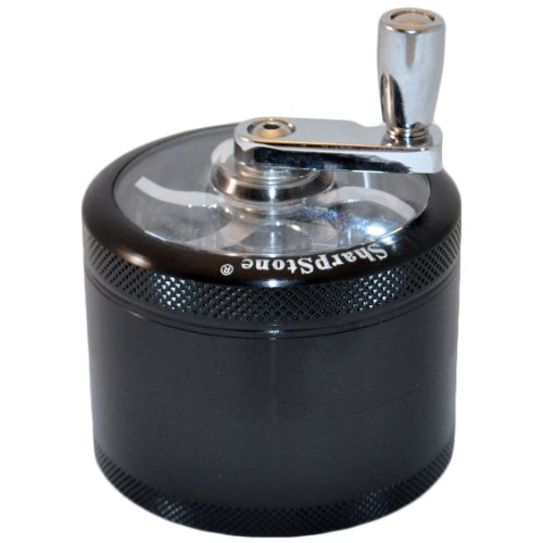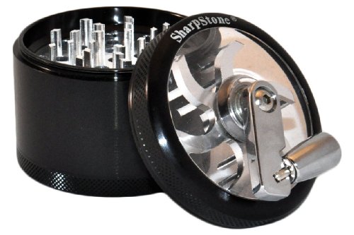 2.5" - Black 4 Piece SharpStone Herb Grinder with Reeling Handle + Custom Pollen Pick Bundle