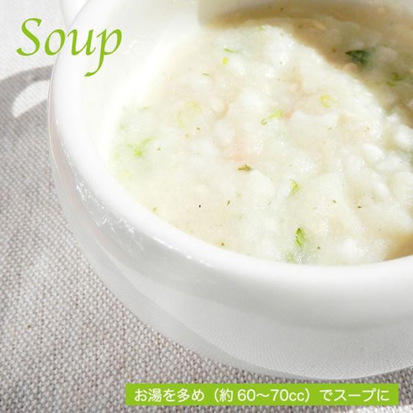 ぬるま湯(水でも可)を注ぐだけで、簡単に栄養バランスの良いリゾットが出来上がります。