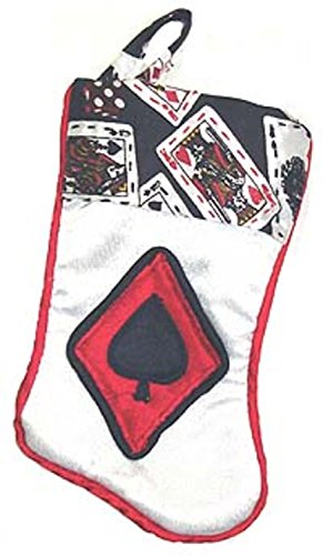 Santa's Best Deck of Cards Spades Casino Gambling White Mini Christmas Stocking, 7"