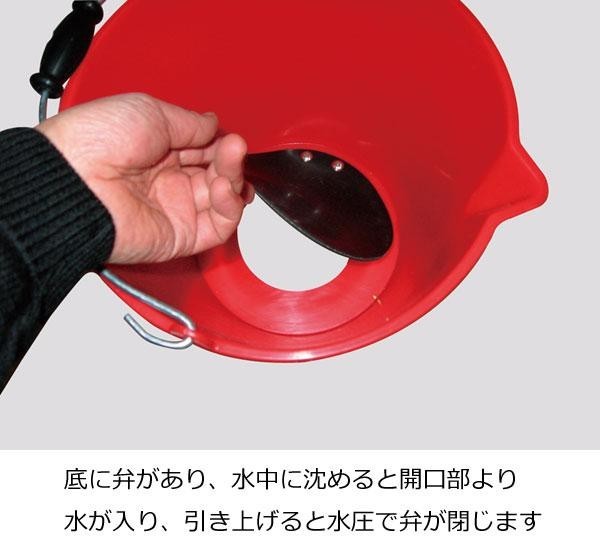 fk094igrjs底に弁があり、水中に沈めると開口部より水が入り、引き上げると水圧で弁が閉じます。 製造国:日本 素材・材質:本体:PEつる:鉄 商品サイズ:Φ300×H220mm 仕様:容量:8L※お届け地域により、別途運賃がかかる場合やお届けできない場合がございますので、お問い合わせ下さい。