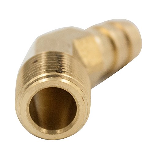 Legines Brass Hose Barb Fitting, 45 Degree Elbow to Male Pipe, 5/16" Hose ID Barb x 3/8" NPT Male, 2 pcs
