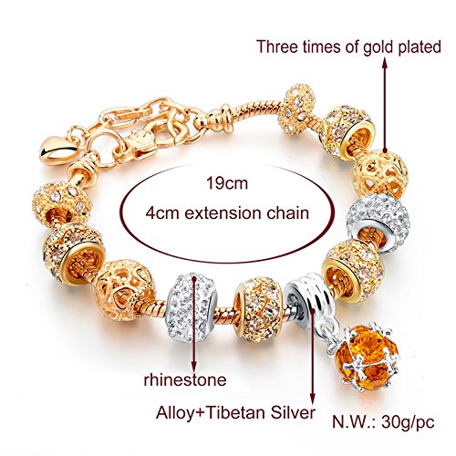 - Feature : Packaged by Beautiful Purple Gift Box / Material:High Quality Crystal,Lead Free,Nickel Free Eco-friend Zinc Alloy,Gold Plated,Silver Plated,Rhinesrone,Glass Beads / Size:19CM ,With 4 cm Extension,Weight:30g,Fit For Most People / Best Gift For Birthday, Anniversary, Holidays, Stocking Stuffers, Graduation, Christmas, Valentine's Day, Mother's Day and Any Other Occasions / You can exchange or refund in one month if the bracelet has some problem.But you need to offer the photo of the bracelet which has some quality problem.