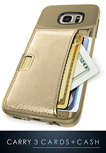 -. Feature : Comfortably fits 3 cards (credit cards, IDs, etc.) plus cash / Ultra slim wallet case securly fits Galaxy S7 / Durable full-frame protection from drops and dings / Lay-flat Screen Guard provides ultimate screen protection / Covert kickstand props phone into two viewing angles