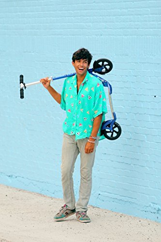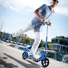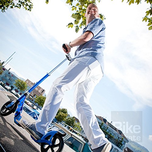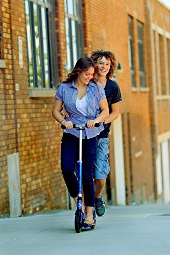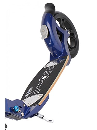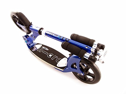 -. Feature : Quality Construction, New Design - the FLEX 2-wheel scooter with aluminum body has a gorgeous new Electric blue metallic finish, with a patented Flex deck constructed of marine-ply and fibreglass for a comfortable, flexible ride / 2-year warranty against manufacturer's defects, replacement parts available from Micro Kickboard / Smooth-gliding, fast 200mm wheels - the Italian designed 'rebounding' wheels, now larger and faster in a 200mm size, with extra thick PU shore coating and performance-grade bearings to resist high pressures and provide a ly quiet, quality ride / Ages 13+up. T-Bar Designed For Adults - the taller t-bar, 38 inches above the deck and 41 inches from the ground is comfortable for most adults / Modular Construction - every part is replaceable. Micro Kickboard, exclusive distributor for Micro-Mobility offers comprehensive parts and repair service