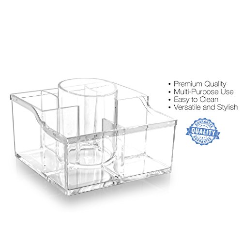 - CLEAR COSMETIC ORGANIZER — Organizes all your makeup and cosmetics into a dazzling personalized beauty counter – This 8-compartment organizer includes taller and shallow sections to accommodate all your needs. Now You have the power of versatility with the perfect organizer that isn’t too big and bulky nor too small. It’s Just Right!!