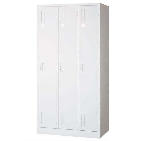 | シンプルで使いやすい3人用ロッカーです。清潔感のあるホワイトはオフィスや店舗などへの設置にピッタリ☆ |