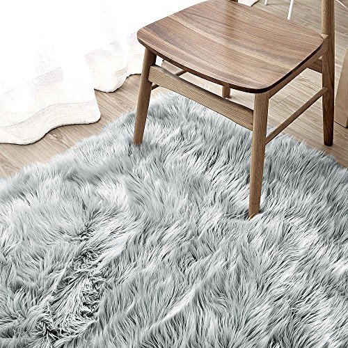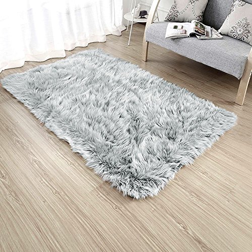 OJIA Deluxe Soft Modern Faux Sheepskin Shaggy Area Rugs Children Play Carpet For Living & Bedroom Sofa (4ft x 6ft, Grey)