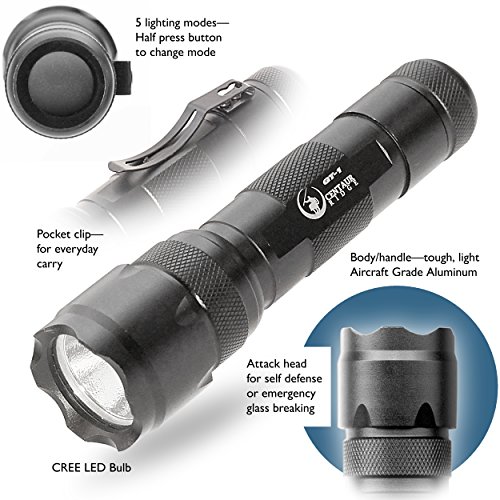 - 5 DIFFERENT LIGHTING MODES - HIGH/MEDIUM/LOW/STROBE/SOS - Be ready for any situation that comes your way whether it be disorienting an attacker or lighting up a trail at night