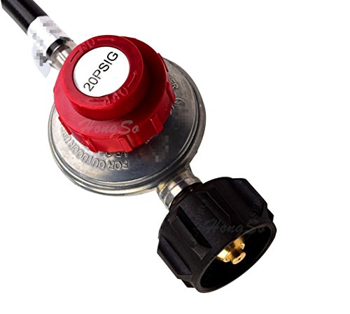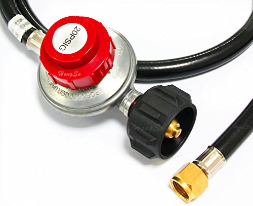 Hongso HR20P-2 High Pressure Propane 0-20 PSI Adjustable Regulator with 4FT QCC1 Type1 Hose Assembly For Propane Appliances, 3/8" Female Flare Fitting, CSA Certified