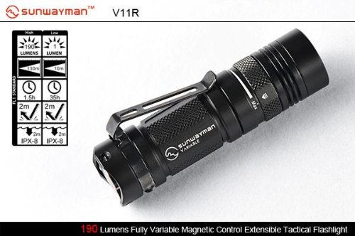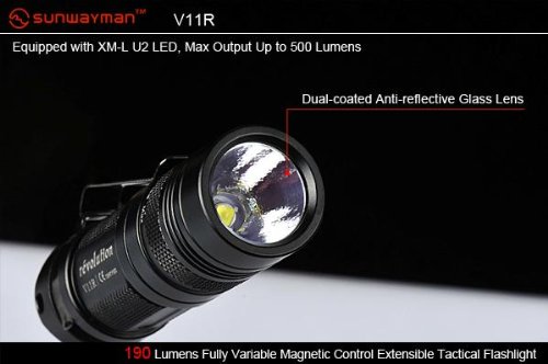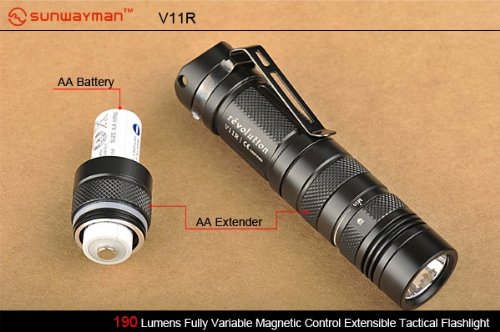 Sunwayman V11R U2 Max 500 Lumen tactical LED Flashlight, AP05 AA Extension , holster & EdisonBright AA & CR123A batteries