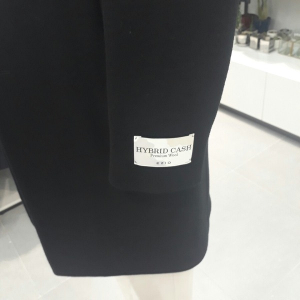 다크블랙의 모직 코트이며 하이브리드 캐시라 하여서 고급울소재를 사용하였으며 방모원단이라 두께감이 있지만 캐시미어 보다 훨씬더 보온성이 좋다. 색감이 뚜렷하여 스타일리쉬한 느낌을 살려주며 부드러운 촉감이 착용시 편하다.