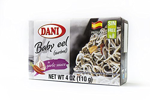 Dani Baby Eel ( Surimi ) Pack of 25 units , in Garlic Sauce ( Gulas/Surimi) Canned 4 oz ( 110 g)