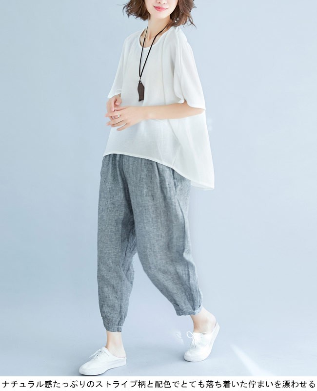 レディース 九分丈パンツ ブルマー サルエルパンツ ウエストゴム ゆったり 女性用 ロングパンツ ブルーマー 体型カバー 薄手 夏物 春秋物レディース用のサルエルパンツが登場吸湿性・通気性に優れた綿混紡素材を厳選、夏に爽やかな肌触りをもたらすゴム仕様のウエストにゆったりとしたシルエットで幅広い体型を対応できるブルーマーのデザインに九分丈の仕様でエキゾチックな雰囲気が溢れ出し、華奢な足首をも強調ナチュラル感たっぷりのストライプ柄と配色でとても落ち着いた佇まいを漂わせる気質アップ効果抜群、夏のコーデを必ず格上げさせる一枚カラー:写真色素材 綿混紡サイズ(cm) L XLL 総丈87 ウエスト72-102 ヒップ120XL 総丈89 ウエスト78-108 ヒップ130ご注意:※サイズは平置きサイズです。素人採寸ですので、若干の誤差がございます、ご了承ください。