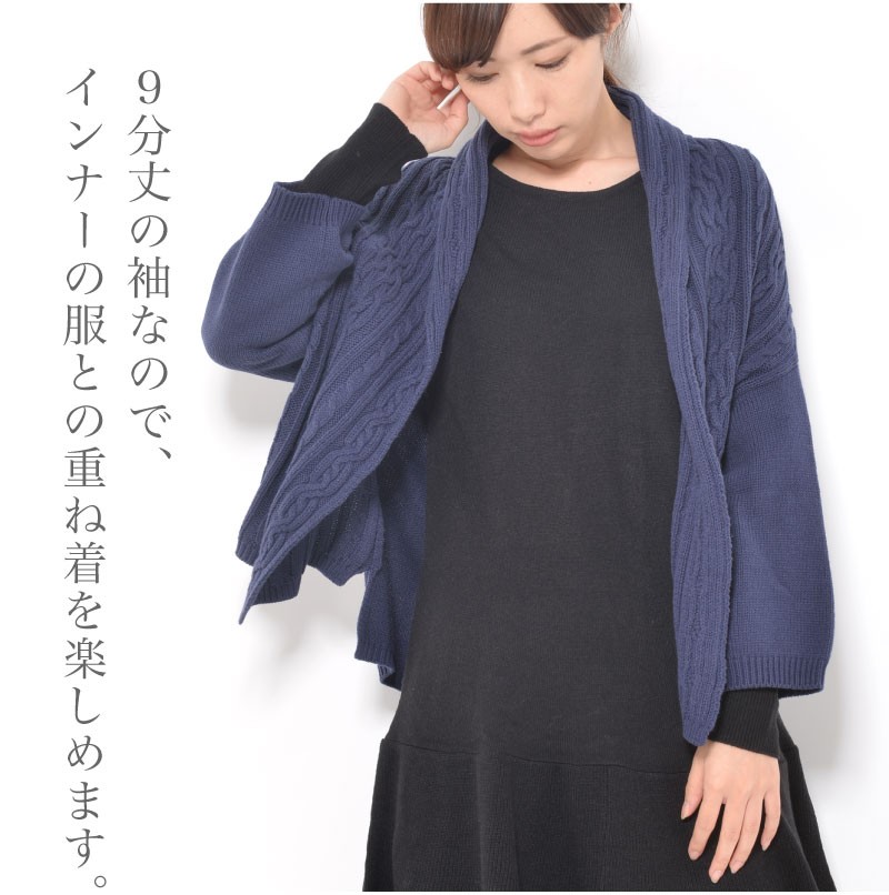 9分丈の袖なので、インナーの服との重ね着を楽しめます。
