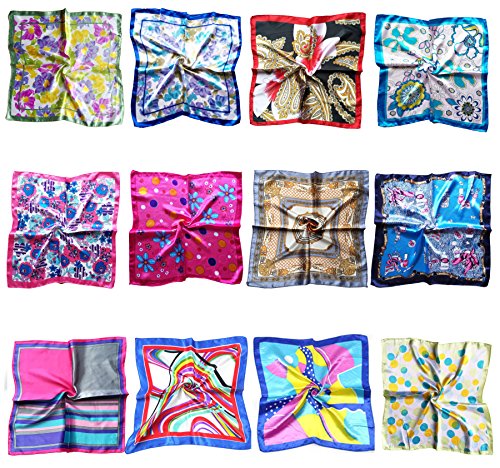 -. Title : LilMents 12 Mixed Designs Small Square Satin Womens Neck Head Scarf Scarves Bundle Lot Set