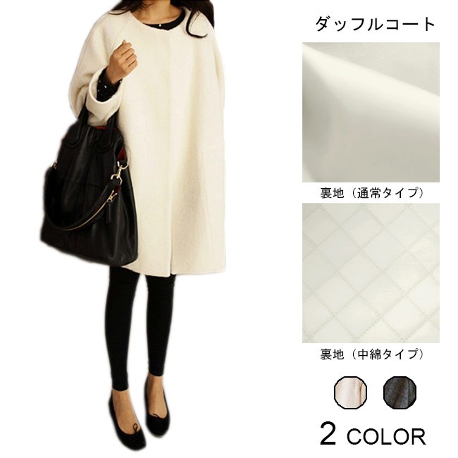 コート レディース ダッフルコート 2タイプ 中綿コート ゆったり 丸襟 女性用 アウター 春秋物 冬物 長袖 可愛いい 通勤レディース用のダッフルコートが登場ゆったりとしたサイズ感でリラックスな着心地をもたらすやや膨らんでいるカッティングもとても若い女性らしくて可愛いいシンプルなシルエットに着まわしの色チョイスで誰でも気軽に着こなせる丸襟のデザインでマフラーとのコーデも十分楽しめる一枚通常タイプと中綿タイプの2種類が用意され、季節次第で選べるカラー:ホワイト(通常タイプ) グレー(通常タイプ) グレー(中綿タイプ) ホワイト(中綿タイプ)素材 ポリエステルサイズ(cm) S M L XL 2XLS 着丈81 バスト98M 着丈82 バスト102L 着丈83 バスト106XL 着丈84 バスト1102XL 着丈85 バスト114ご注意:※サイズは平置きサイズです。素人採寸ですので、若干の誤差がございます、ご了承ください。