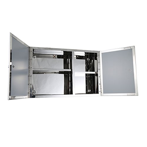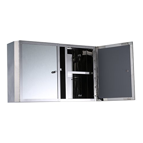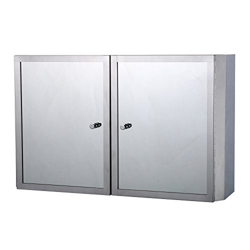 ✔ STYLISH LOOK: This HomCom hinged double door, stainless steel cabinet with mirrored front presents a polished look that complements a wide range of decor styles.
